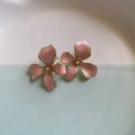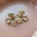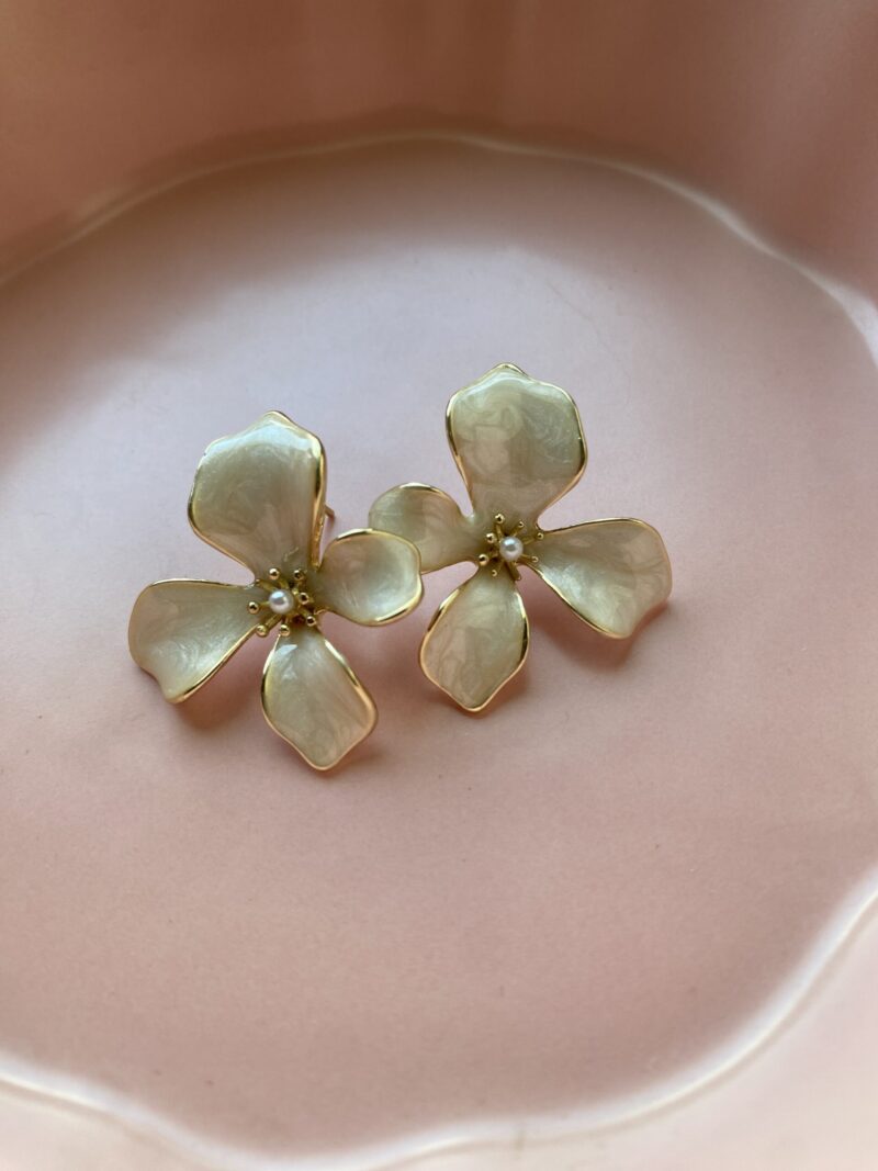Elegant enamel studs featuring a delicate white flower,reminiscent of a hidden bloom in a lush forest