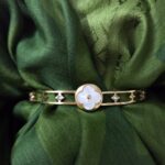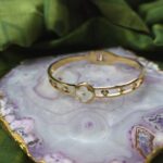 This bracelet features a soft white clover bloom framed in gold, surrounded by star-like accents. Feminine, minimal, and full of charm.