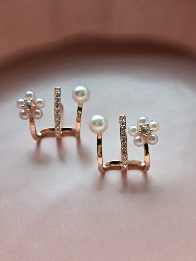 A sophisticated pair of enamel and pearl flower earrings in varied rich hues, showcasing intricate artistry