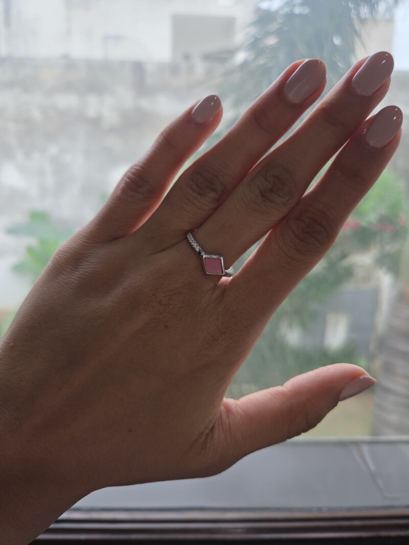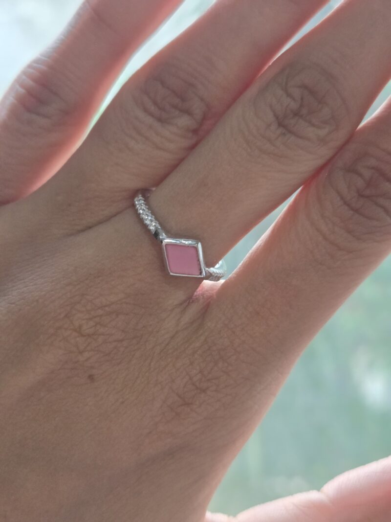 92.5 Sterling Silver Ring with Mother of Pearl & cubic zirconia in a sleek open design.