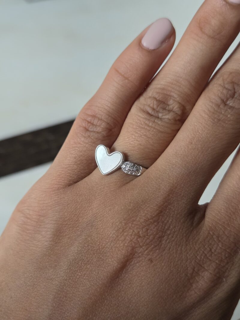 92.5 Sterling Silver Ring with Mother of Pearl & cubic zirconia in a sleek open design.