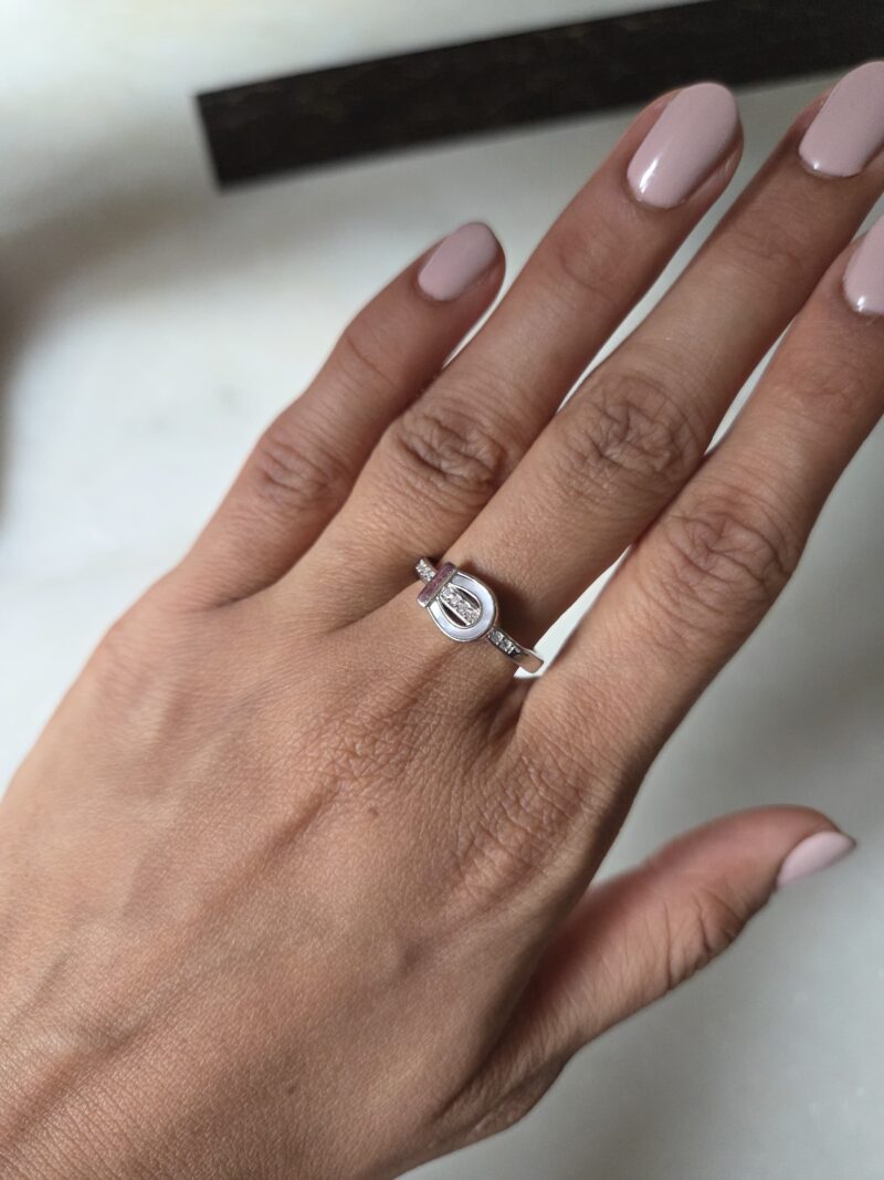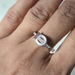 92.5 Sterling Silver Ring with Mother of Pearl & cubic zirconia in a sleek open design.