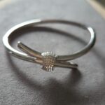 Exquisitely crafted from polished 925 sterling silver, the Silver Knot Bangle embodies a chic, minimalist design with a touch of modern luxury. This elegant piece features a beautifully intertwined knot at its center, meticulously pavé-set with shimmering cubic zirconia stones. The sleek, open-cuff design ensures a comfortable fit and makes it a versatile accessory that can be worn alone for a subtle statement or stacked with other bracelets for a bolder look.